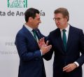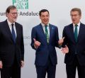 Juanma Moreno con Mariano Rajoy y Alberto Núñez Feijóo.