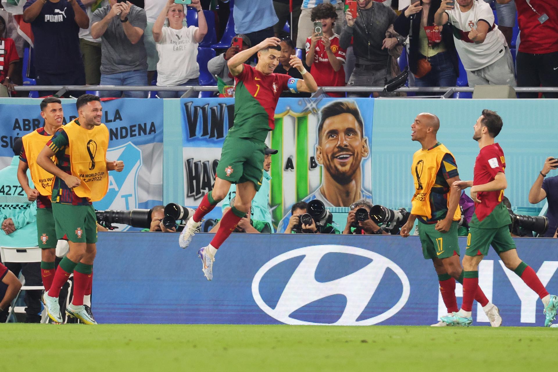El delantero portugués Cristiano Ronaldo celebra su tanto de penalti ante Ghana. Un gol con el que se convertía en el único futbolista que ha marcado en cinco Mundiales seguidos. Noticias relacionadas