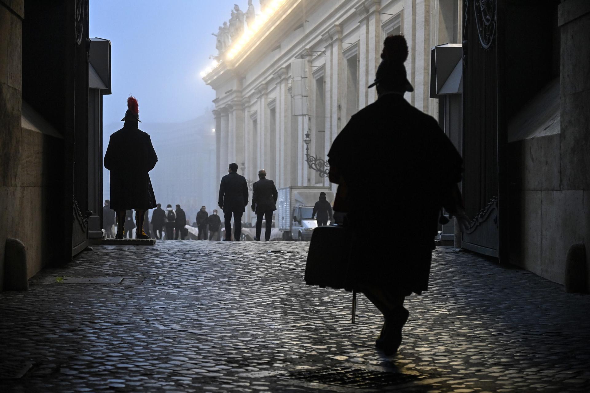 Guardias Suizos en la plaza del Vaticano durante el funeral por Benedicto XVI