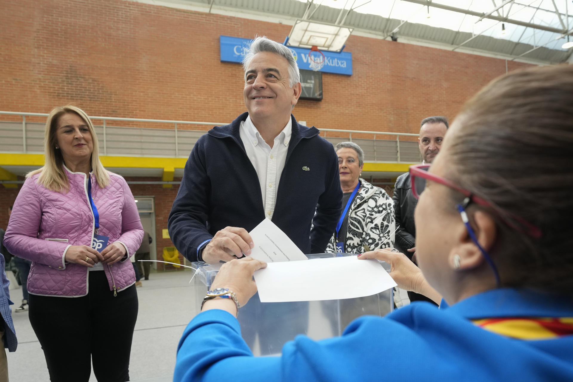 El candidato a Lehendakari del Partido Popular, Javier de Andrés, ejerce su derecho al voto en el centro cívico de Judizmendi de Vitoria-Gasteiz para las elecciones al Parlamento Vasco, este domingo.Noticias relacionadas