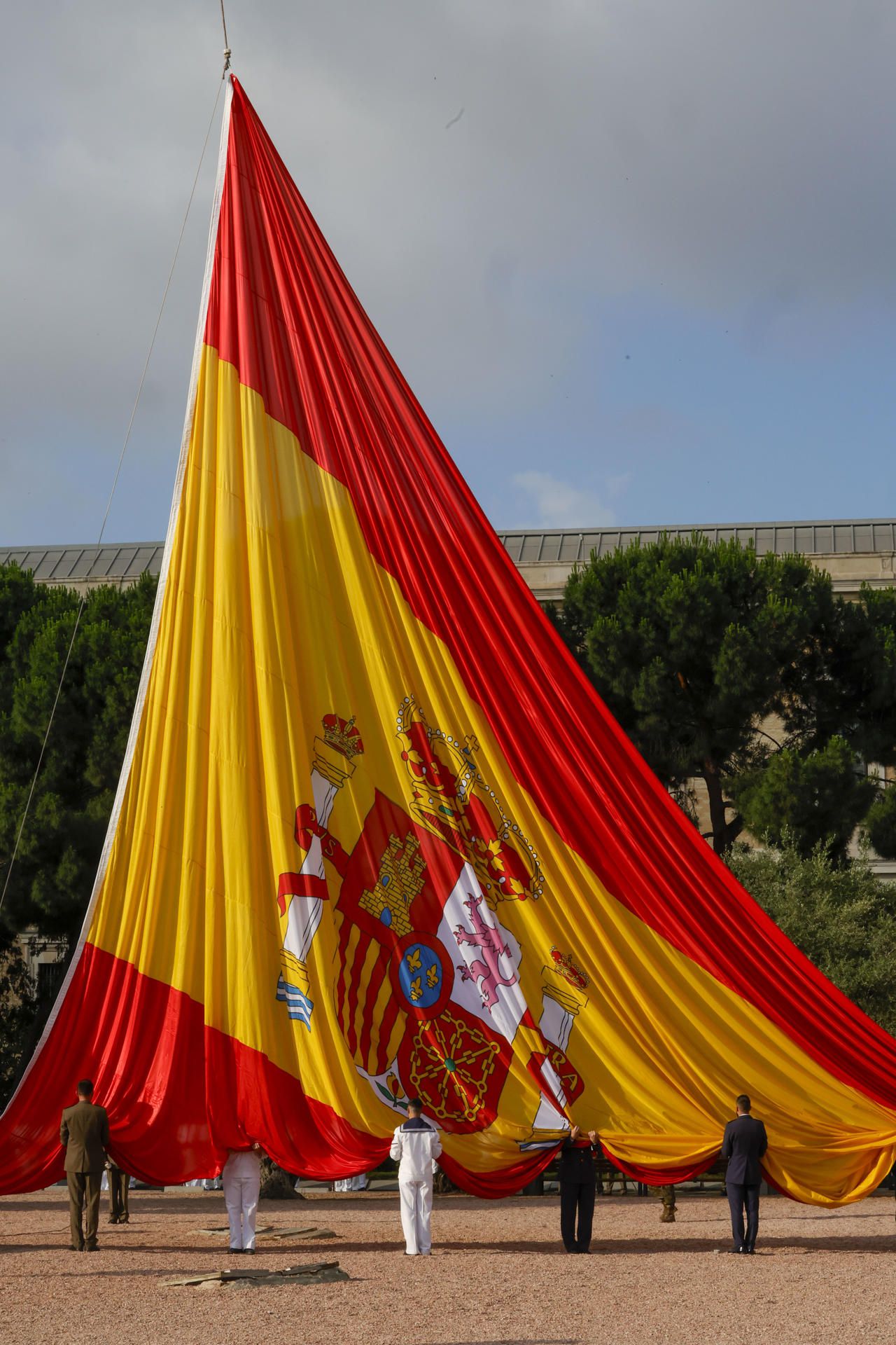 Acto de izado de bandera por el décimo aniversario del reinado de Felipe VI este miércoles en los Jardines del Descubrimiento de la plaza de Colón de Madrid.Noticias relacionadas