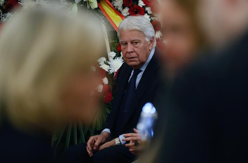 El expresidente del Gobierno Felipe González, en la capilla ardiente del exvicepresidente del Gobierno Alfredo Pérez Rubalcaba, instalada en el Congreso de los Diputados.Noticias relacionadas