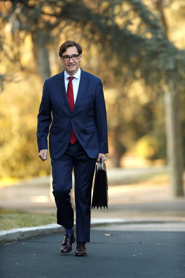 El ministro de Sanidad, Salvador Illa, llega al Palacio de la Moncloa para asistir al primer Consejo de Ministros del Gobierno de coalición presidido por Pedro Sánchez, este martes en Madrid.Noticias relacionadas