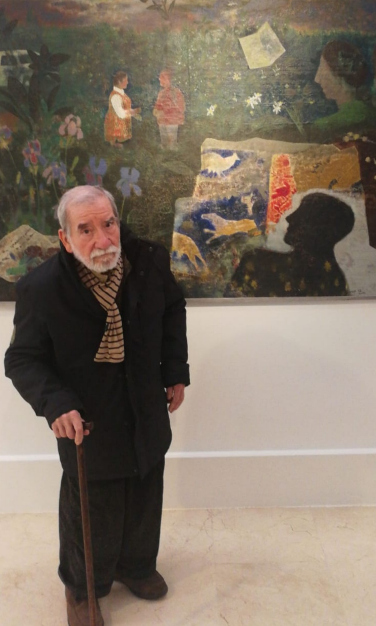 Alcorlo delante de su cuadro Recuerdo de Roma 1962