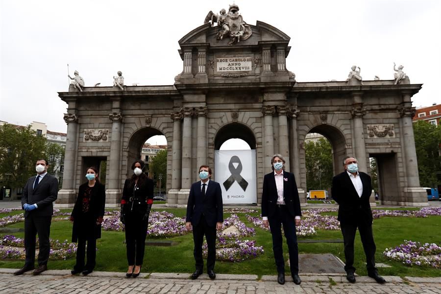 Madrid rinde homenaje a las víctimas con un crespón negro en a Puerta de Alcalá