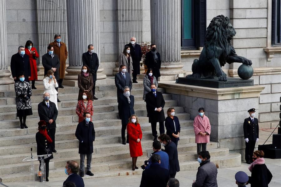 Vista general de la celebración del cuadragésimo segundo aniversario de la Constitución en la escalinata del Congreso de los Diputados este domingo en Madrid.Noticias relacionadas