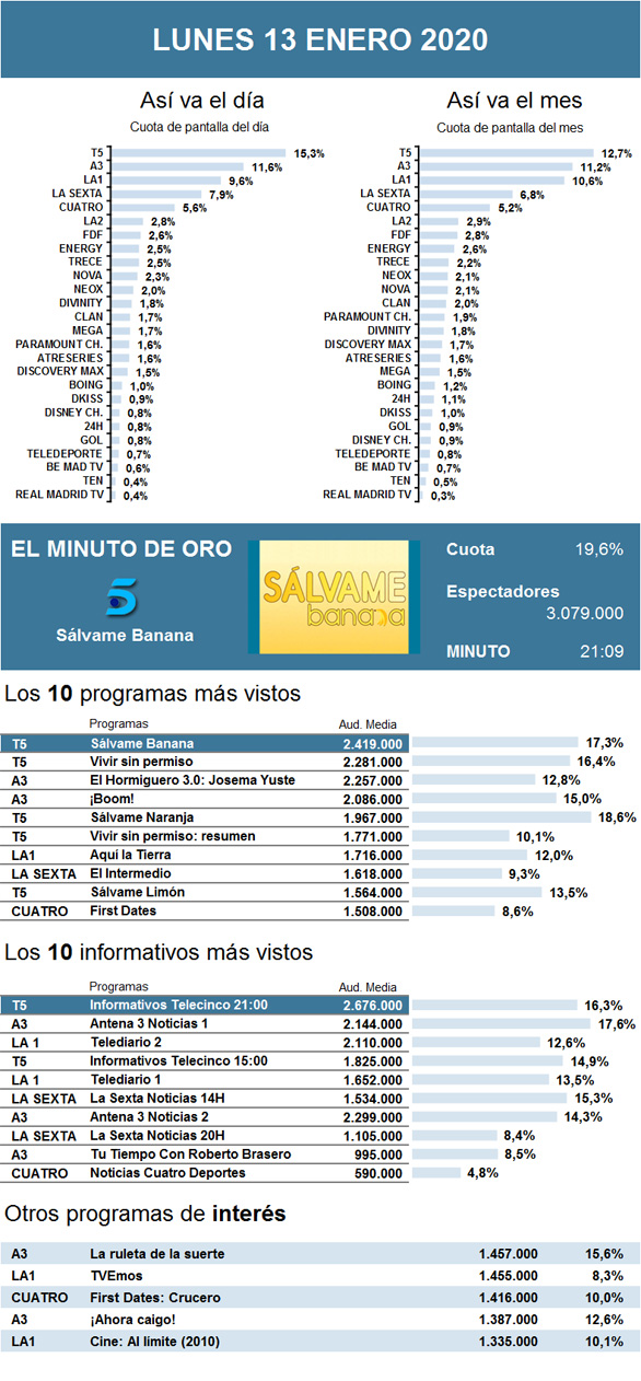 El estreno de la segunda temporada de Vivir sin permiso se impuso durante la noche en Telecinco, aunque no logró igualar los datos de su primera etapa. Por detrás, el debut de First Dates: Crucero alcanzó muy buenos resultados en Cuatro y superó por poco al cine de La 1.
