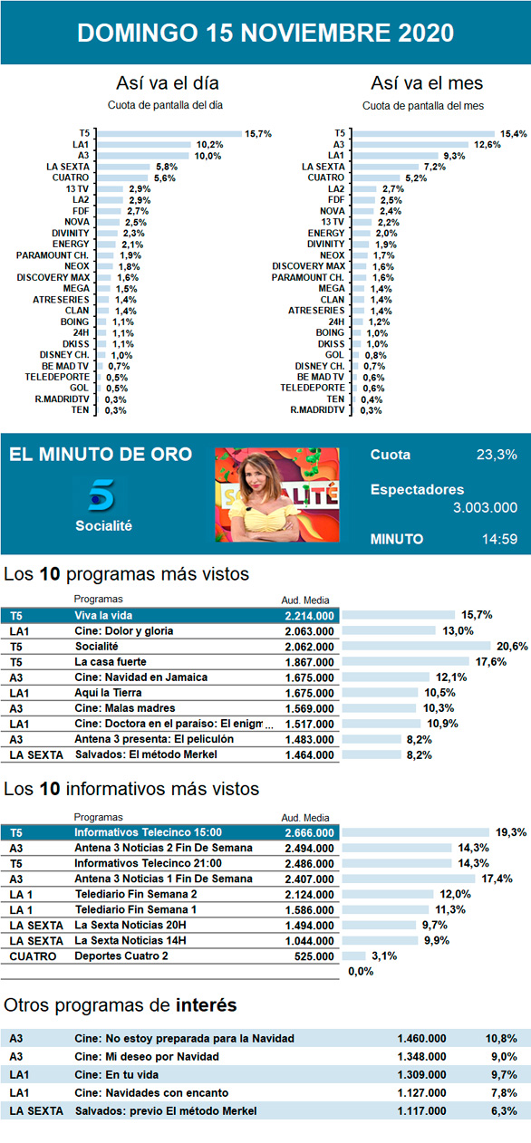 El 'reality' batió su récord de audiencia de esta segunda edición, también gracias a su cambio de dinámica. Además, volvió a imponerse en cuota de pantalla, si bien el cine de La 1 le venció en espectadores con el estreno de la película de Pedro Almodóvar Dolor y gloria.