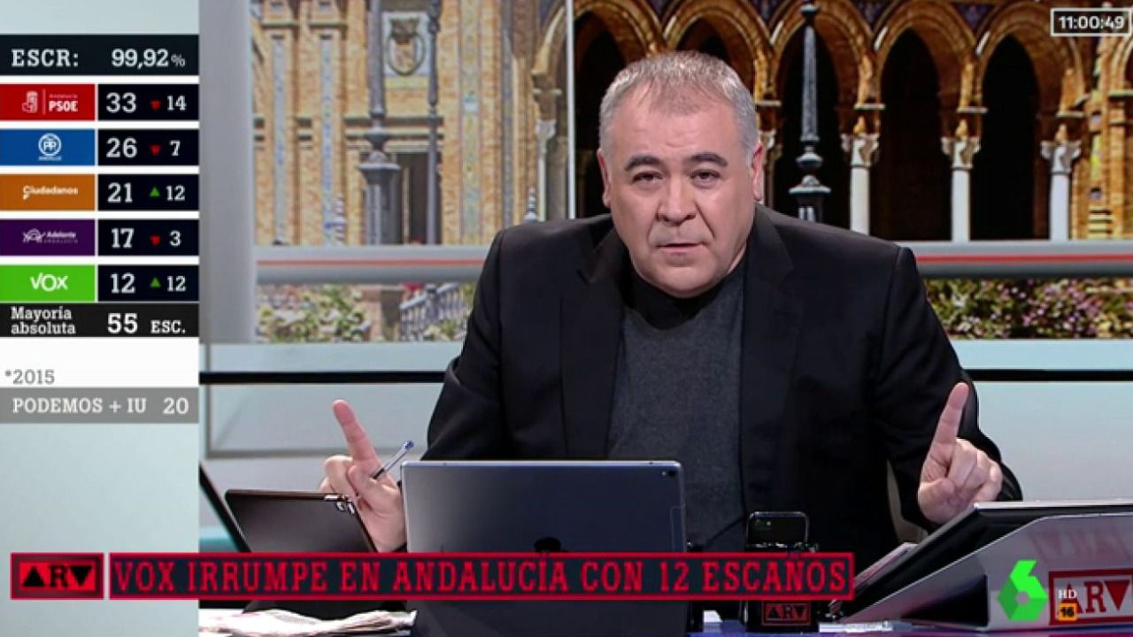 En una noche marcada por las elecciones andaluzas, sólo La Sexta y La 1 decidieron dedicar toda su noche a su cobertura. Mientras que la edición especial de Al rojo vivo se impuso con cerca de 2,6 millones de seguidores, el programa especial de la cadena pública, Andalucía decide, rondó los 1,5 millones de interesados.