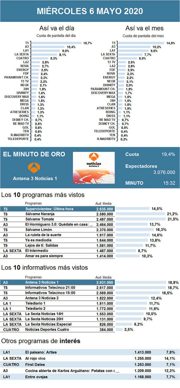 Aunque este miércoles Antena 3 Noticias 1 volvió a ser lo más visto del día y, además, se coronó como minuto de oro, la gran novedad del día vino de la mano de Cuatro.