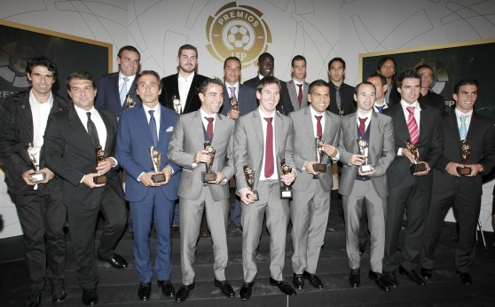 Ocho de los diez premios de Primera división otorgados por la Liga de Fútbol Profesional (LFP), que galardonó a los mejores de la pasada campaña, recayeron sobre el Barcelona, campeón del triplete, que solo dejó al resto el premio a mejor portero -Iker Casillas- y juego limpio -Juan Carlos Valerón-. La Casa de Correos de Madrid acogió la gala de entrega de los premios de la LFP para los mejores jugadores y entrenadores de Primera y Segunda división, en una noche en la que el fútbol español estuvo ampliamente representado. Numerosos presidentes de clubes con Florentino Pérez y Joan Laporta, que compartieron mesa y mental, a la cabeza, directores deportivos, técnicos y jugadores, reconocieron a los mejores de la pasada Liga, con premios a mejor jugador (Leo Messi) y mejor entrenador (Pep Guardiola), votados por los futbolistas en activo. El resto de galardones, salvo juego limpio votado por las aficiones a través de las Federaciones de peñas, fueron concedidos por los entrenadores de la pasada temporada. ![]() La lista de premios fue la siguiente: el Barcelona como campeón de Liga, Leo Messi mejor jugador y mejor delantero, Pep Guardiola entrenador, Iker Casillas portero, Dani Álves defensa, Xavi Hernández mediocentro, Andrés Iniesta centrocampista, Sergio Busquets jugador revelación y Juan Carlos Valerón premio al juego limpio. Los galardones se fueron entregando durante una cena en la que el presidente de la LFP José Luis Astiazarán fue el anfitrión, que dejó reencuentros y conversaciones interesantes como las que cruzaron Fernando Hierro, director deportivo de la Real Federación Española de Fútbol, con Emilio Butragueño y Miguel Pardeza, director de relaciones institucionales y director deportivo del Real Madrid, respectivamente. O la mesa de futbolistas con el madridista Iker Casillas rodeado de barcelonistas, junto a sus compañeros de selección los valencianistas David Villa y Juan Mata, más Valerón. Aunque la frase de la noche la dejó Jorge Valdano, director general del Real Madrid, al entregar el premio a Andrés Iniesta y Momo del Xerez. "Me los llevaba a los dos a mi equipo. Son muy buenos futbolistas", dijo ante la sonrisa de Iniesta. En Segunda división la lista de premiados fue la siguiente: el Xerez como campeón de Liga, Nino mejor jugador y mejor delantero, José Luis Oltra mejor técnico, el chileno Claudio Bravo portero, Marc Bertrán defensa, el colombiano Abel Aguilar mediocentro, Alfaro centrocampista, Diamé jugador revelación y Farinós premio al juego limpio. |