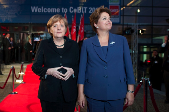 La canciller alemana, Angela Merkel, y la presidenta de Brasil, Dilma Rousseff, coincidieron en definir la presencia de Brasil como invitado especial en la CeBIT como un hito de una larga cooperación tecnológica y económica entre los dos países.