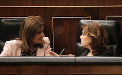 El Parlamento funciona a pleno rendimiento legislativo el 29-M pese al medio gas de sus servicios y a la ausencia de diputados de Izquierda Plural, del Grupo Mixto y de una díscola socialista. El PSOE está, aunque no ha perdido ocasión de expresarse favorable a las demandas de los huelguistas. Aplausos para Fátima Báñez a su entrada en la Cámara.