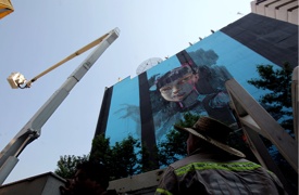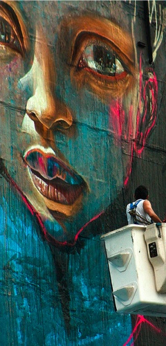 Con máscaras para protegerse de los gases de la pintura, sombreros contra el sol y subidos en una grúa trabajan casi sin descanso desde el pasado lunes, cuando dio comienzo el festival de arte urbano All City Canvas, y lo harán hasta este viernes, día en que vence el plazo para la concluir las obras.