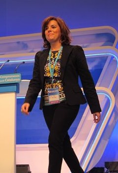 La vicepresidenta del Gobierno y dirigente del PP, Soraya Sáenz de Santamaría, ha llamado en Cataluña a aparcar las "diferencias" políticas y ha apelado a la "cooperación institucional" para sacar "unidos" a España y Cataluña de la crisis económica, a partir de las reformas que aplica el Ejecutivo.