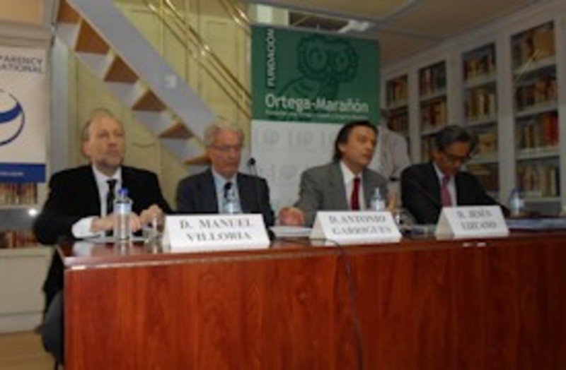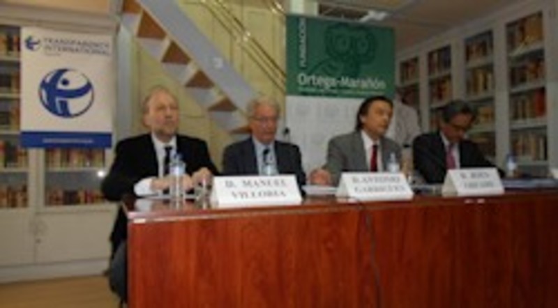 La ONG Transparency Internacional España ha presentado un informe sobre la transparencia de las diputaciones provinciales, en el que se muestra que la mayoría suspende en facilitar la información a los ciudadanos, en la Fundación Ortega-Marañón. En el acto han intervenido el catedrático de la UAM y presidente de la organización en España, Jesús Lizcano, el patrono vitalicio de la Ortega-Marañón, Antonio Garrigues Walker, el director general de la Ortega- Marañón, Jesús Sánchez Lambás, y el catedrático de la Universidad Rey Juan Carlos, Manuel Villoria. La puntuación media obtenida por las diputaciones ha sido de 48,6 sobre 100, lo que supone un suspenso en un informe que mide la transparencia de las diputaciones a través de 80 indicadores. Se trata de un indicador que también ha estudiado también otras instituciones como ayuntamientos o comunidades autónomas.