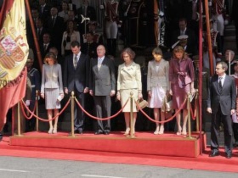 Ya en la calle, el Rey ha aproximado a la tribuna instalada frente a la fachada del Palacio, acompañado de numerosas autoridades, que junto al monarca, han presenciado el último desfile militar de la solemne jornada. Este mediodía, Don Juan Carlos comerá con el presidente del Gobierno, los presidentes de las dos Cámaras y el resto de miembros de las mesas presidenciales del Congreso y del Senado.