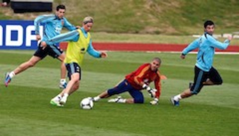 Por la tarde, en cambio, situó a Fernando Torres, que jugó de inicio frente a Corea del Sur, como referencia arriba junto a Xavi, Iniesta y Silva, tres futbolistas fijos en el esquema del técnico para el estreno del próximo domingo frente a Italia en la Eurocopa, en un centro del campo también con Xabi Alonso y Sergio Busquets.