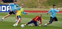 Del Bosque, al igual que esta mañana, dispuso esta tarde de todos sus efectivos, los 23 jugadores convocados para el torneo, una vez que Cesc Fábregas ya se ha reincorporado al grupo, tras superar la elongación muscular sufrida el pasado 25 de mayo en la final de la Copa del Rey frente al Athletic Club en el Vicente Calderón.