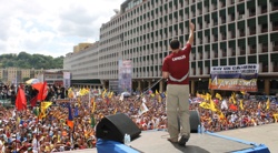 El candidato se comprometió durante su discurso a unir a los venezolanos, divididos por diferencias políticas, y aseguró que sería, incluso, "el presidente de los rojos" refiriéndose a los seguidores de Chávez.