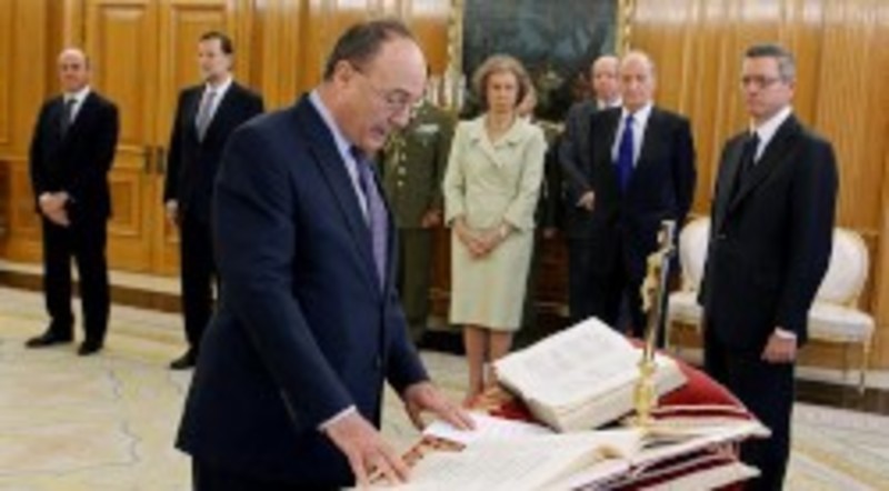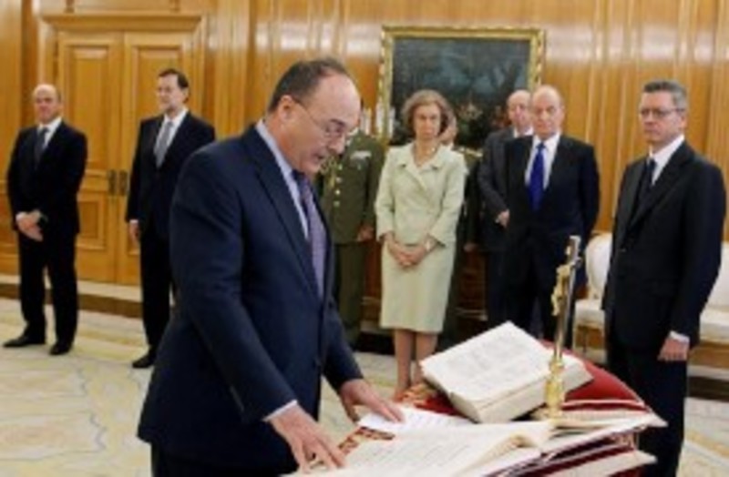 Con la mano derecha sobre un ejemplar de la Constitución y ante la Biblia, junto a un crucifijo, Linde ha elegido la fórmula de la promesa para expresar su fidelidad al cargo, en el que sustituye a Miguel Ángel Fernández Ordóñez, que ha ejercido como gobernador los últimos seis años.