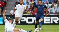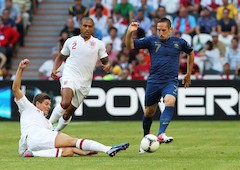 La primera parte del envite entre dos campeones mundiales como Francia e Inglaterra resultó tan igualado como carente de brillo. El único futbolista que se escapaba de la mediocridad generalizada fue Karim Benzema, cuyas apariciones ponían algo de lustre al duelo entre dos equipos que mostraban tanta brega como poco fútbol. Decepcionaba el combinado de Laurent Blanc, cuyo bagaje ofensivo tras media hora de partido fue un disparo de Cabaye desde media distancia.