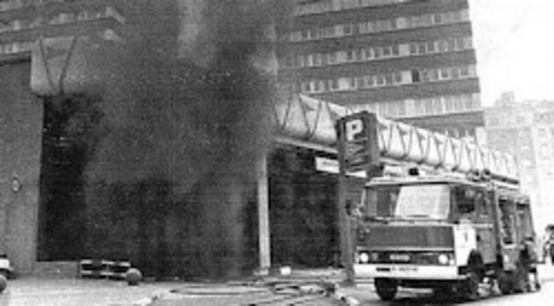 Minutos después, la explosión de la bomba escondida en el vehículo abrió un cráter en el suelo del aparcamiento y un boquete en el techo, por los que pasó una ola de fuego que abrasó y asfixió a empleados y clientes.