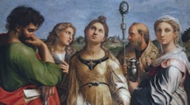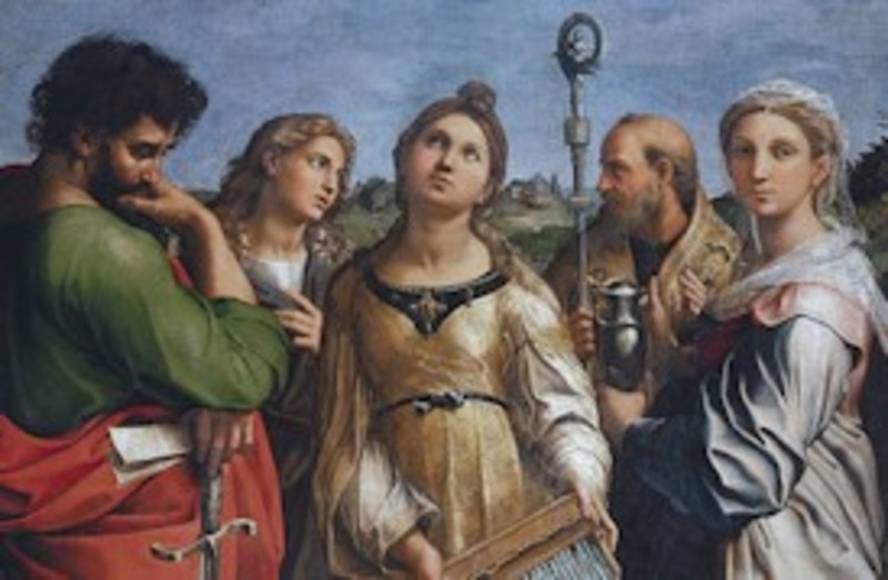 Santa Cecilia, pintada por Rafael entre 1515-1516, las figuras representadas se encuentran integradas en el paisaje, no sucede lo mismo en