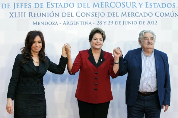 Antes, Fernández anunció que ella y los presidentes de Brasil, Dima Rousseff, y Uruguay, José Mujica, habían acordado suspender a Paraguay del Mercosur en rechazo a la destitución de Fernando Lugo como presidente por parte del Senado paraguayo.