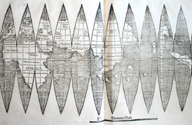 Brintizinger explicó en un comunicado que se trata de un ejemplar anterior y mas pequeño que el conocido mapa mundial de Waldseemüller de tres metros cuadrados.