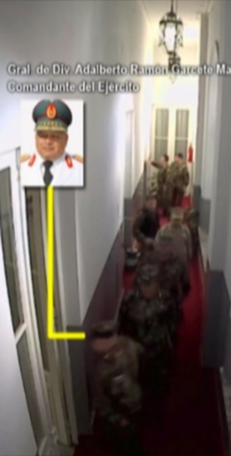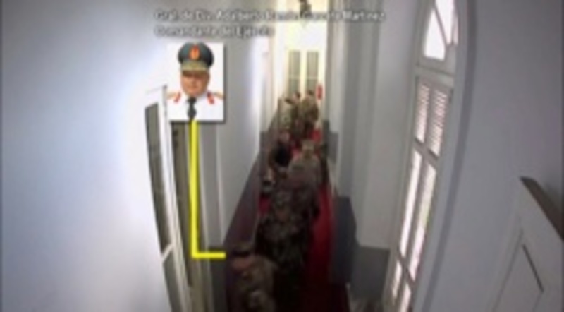 García, que dio a entender que el material sería después entregado a la Fiscalía, entregó a la prensa un video editado de un minuto y 50 segundos que identifica a los altos mandos y muestra entradas y salidas de éstos y Maduro por el interior del Palacio Presidencial.