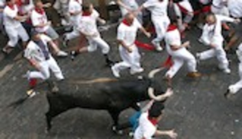 A gran velocidad ha cruzado este tramo para llegar a la curva de la Estafeta, donde ha chocado contra el vallado, en el que se encontraba un mozo, aunque sin que éste haya sufrido al parecer daños.