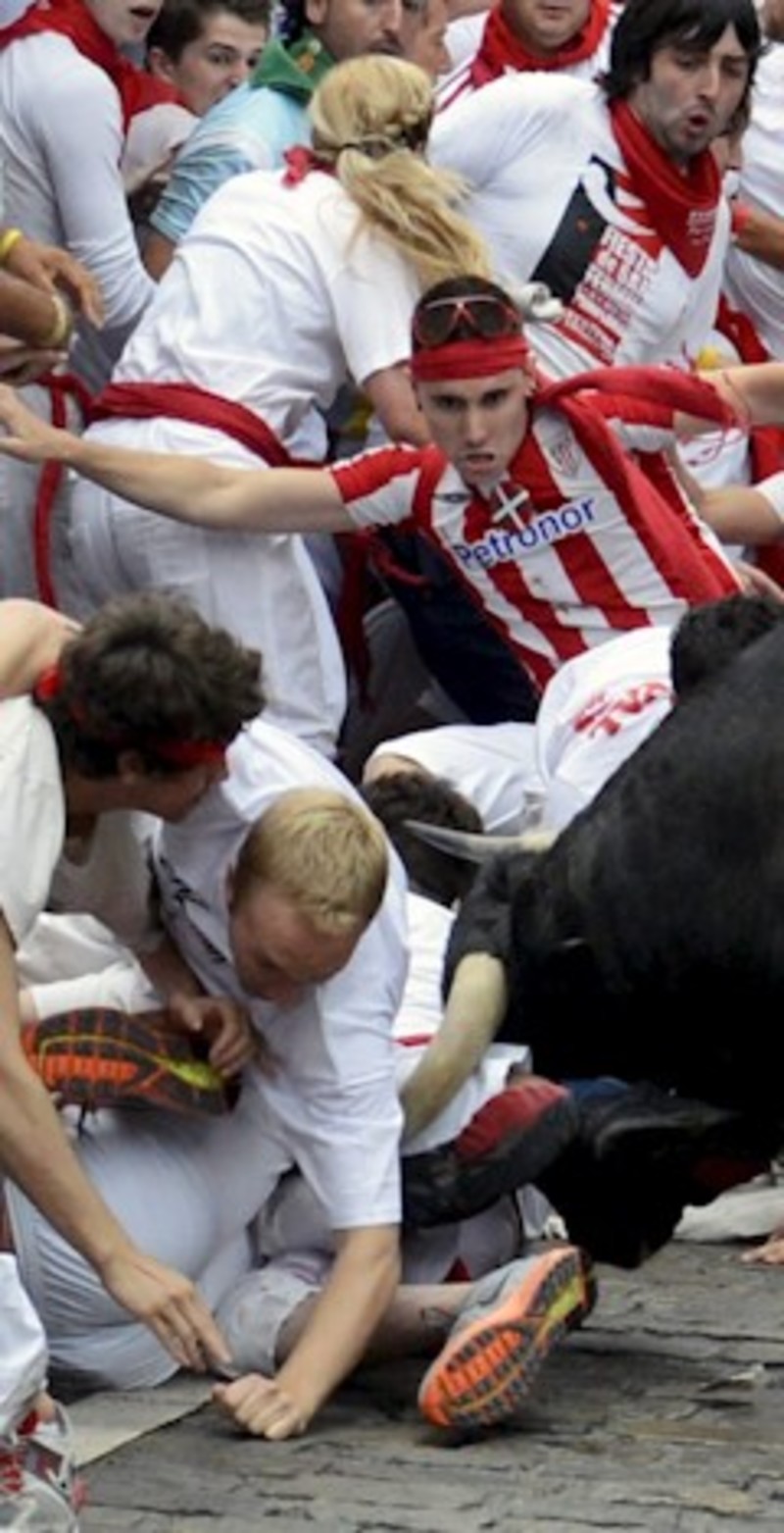Las mayores escenas de peligro se han vivido en el tramo de Telefónica, donde el toro descolgado ha embestido contra un grupo de mozos que se encontraban junto al vallado, en la parte izquierda. De hecho, uno de los heridos por asta se ha producido en este tramo.
