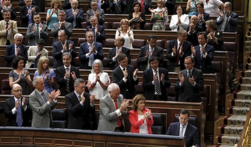 El jefe del Ejecutivo comparece en el Congreso para explicar las nuevas medidas de ajuste: los altos funcionarios no cobrarán la paga de Navidad en 2012, se va a reducir un 30% el número de concejales, se elimina la deducción por compra de vivienda a partir de 2013, se sube el tipo general del IVA del 18 al 21% y los nuevos parados verán reducida su prestación por desempleo a partir del sexto mes. Además, se reduce en 600 millones el presupuesto de los ministerios en este ejercicio y se recortan otro 20% las subvenciones a partidos, sindicatos y organizaciones empresariales en 2013. Rajoy ha anunciado que el paquete de consolidación fiscal en su conjunto, incluyendo ingresos y reducción de gastos, representará 65.000 millones de euros en 2 años y medio, en torno a 6,5 puntos del PIB.