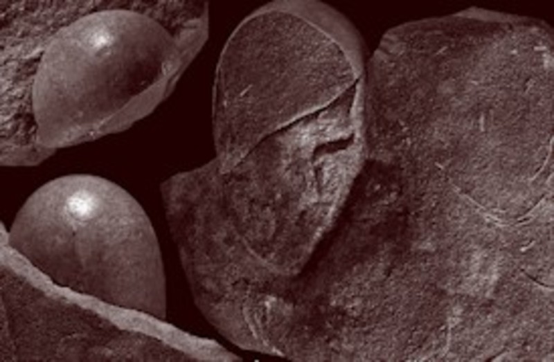 La mayor parte de los huevos se han encontrado rotos en pequeños fragmentos, pero también hay huevos más o menos enteros, que se pueden observar fácilmente en sección.