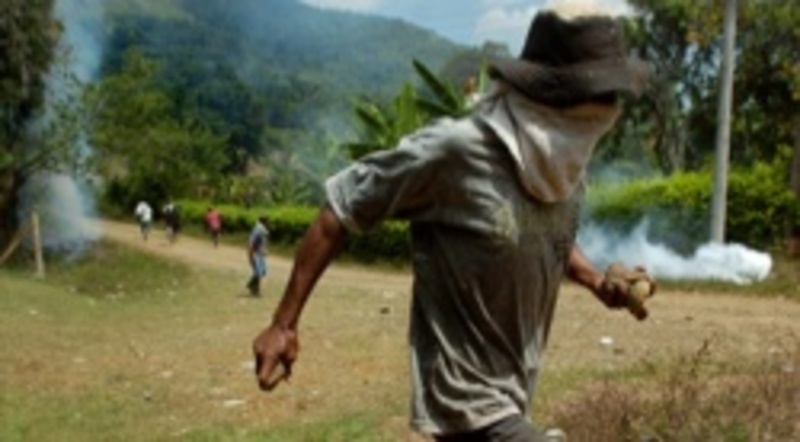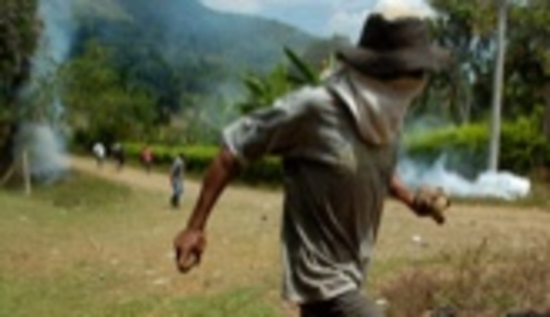 En Huasanó, localidad que pertenece a Caloto, "se presentaron alteraciones del orden cuando un grupo de campesinos que había bloqueado la vía trataron de ser dispersados por agentes del orden. Hay un muerto", declaró a periodistas el alcalde.