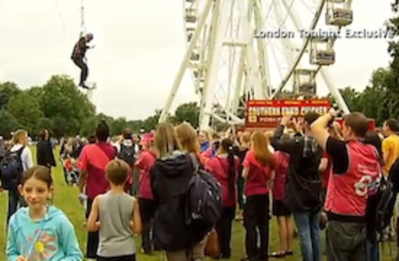 El alcalde había aceptado deslizarse por la tirolina de Victoria Park, uno de los dos escenarios junto a Hyde Park en los que se está celebrando el "BT London Festival", un programa de conciertos y actividades deportivas para festejar los Juegos Olímpicos.