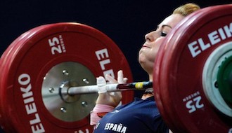 En el Excel Arena, la española, que lucía sus habituales muñequeras de color rosa y un cinturón con un Hello Kitty que tuvo que taparse posteriormente, iniciaba la competición nerviosa y muestra de ello empezó con un nulo en su primer intento en arrancada de 115 kg. Sin embargo, la leonesa se rehizo para en su segundo intento mostrar su valía y conseguirlo con facilidad.