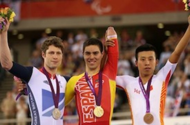 El ciclista paralímpico Alfonso Cabello, con su medalla de oro hoy en la prueba del kilómetro, clase C-5, ha colocado a España en la lista de los países que cuentan con preseas de oro en los Juegos Paralímpicos de Londres 2012.