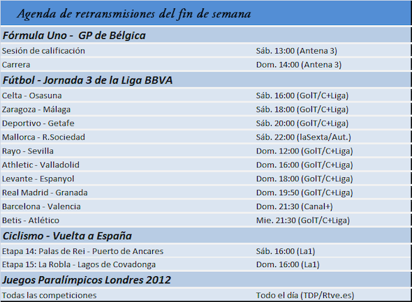 [red]Guía de retransmisiones deportivas.[/red] La Fórmula Uno regresa en Spa de las vacaciones