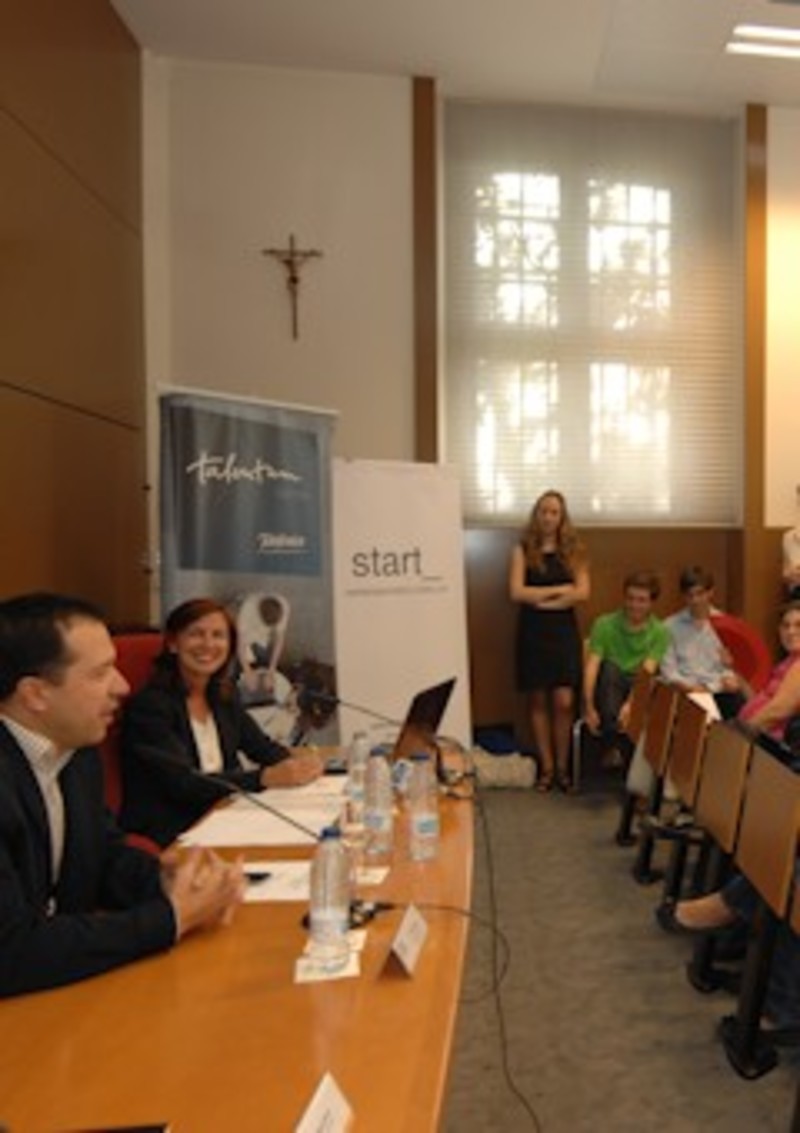 Dentro de la nueva gira de su programa Talentum, Telefónica ha presentado las nuevas becas para universitarios en la Escuela Técnica Superior de Ingeniería ICAI, en Madrid. La recientemente nombrada Presidenta de Telefónica Europa, Eva Castillo, fue la encargada de presentar el proyecto en presencia del director de la Escuela, Mariano Ventosa, y de Vicerrector de Investigación e Internacionalización, Pedro Linares. Eva Castillo explicó a los jóvenes becarios Talentum -que ya han disfrutado de las becas en su primera convocatoria- que España tiene un gran potencial innovador y un alto espíritu emprendedor, y que Europa debe liderar el nacimiento de startups gracias a iniciativas como ésta.