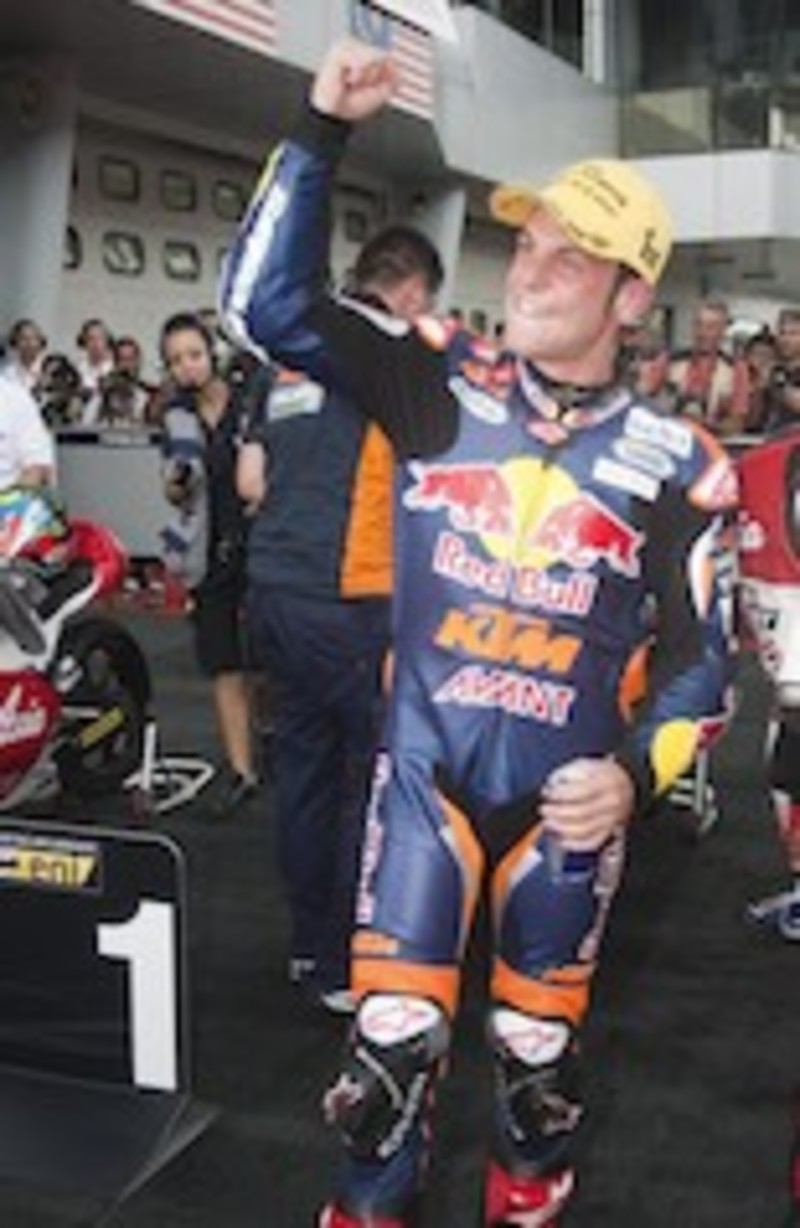 El español Dani Pedrosa (Honda RC 213 V) volvió a ganar, esta vez la carrera disputada en Sepang (Malasia), en donde las malas condiciones climatológicas se convirtieron en protagonistas de una jornada en la que el alemán Sandro Cortese (KTM) se proclamó campeón del mundo de Moto3.
