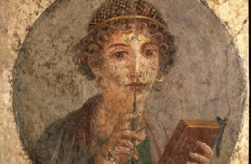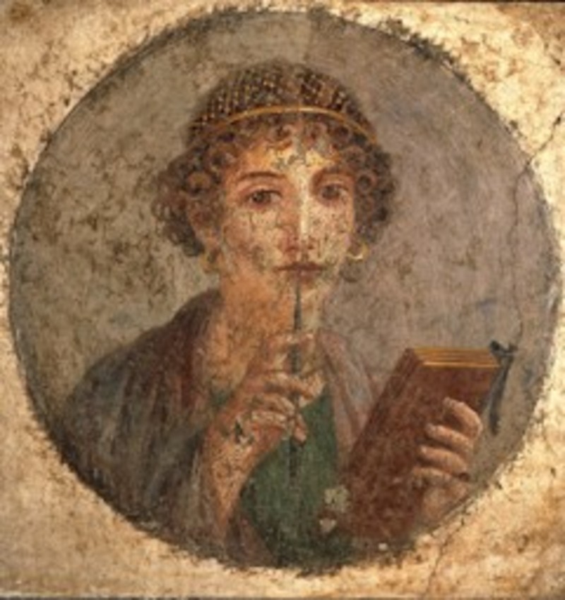 Safo, la poetisa de la isla griega de Lesbos; pieza de gran calidad y de delicada factura que recuerda a los retratos de El Fayum.