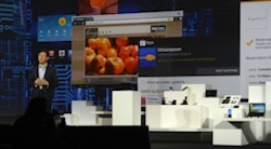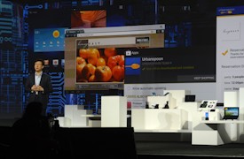 El vicepresidente de la división de pantallas de Samsung, Brian Berkeley, mostró Youm instalado en un teléfono móvil cuyos laterales eran también parte de la pantalla gracias a que ésta está hecha de plástico y no cristal, lo que permite doblarla.