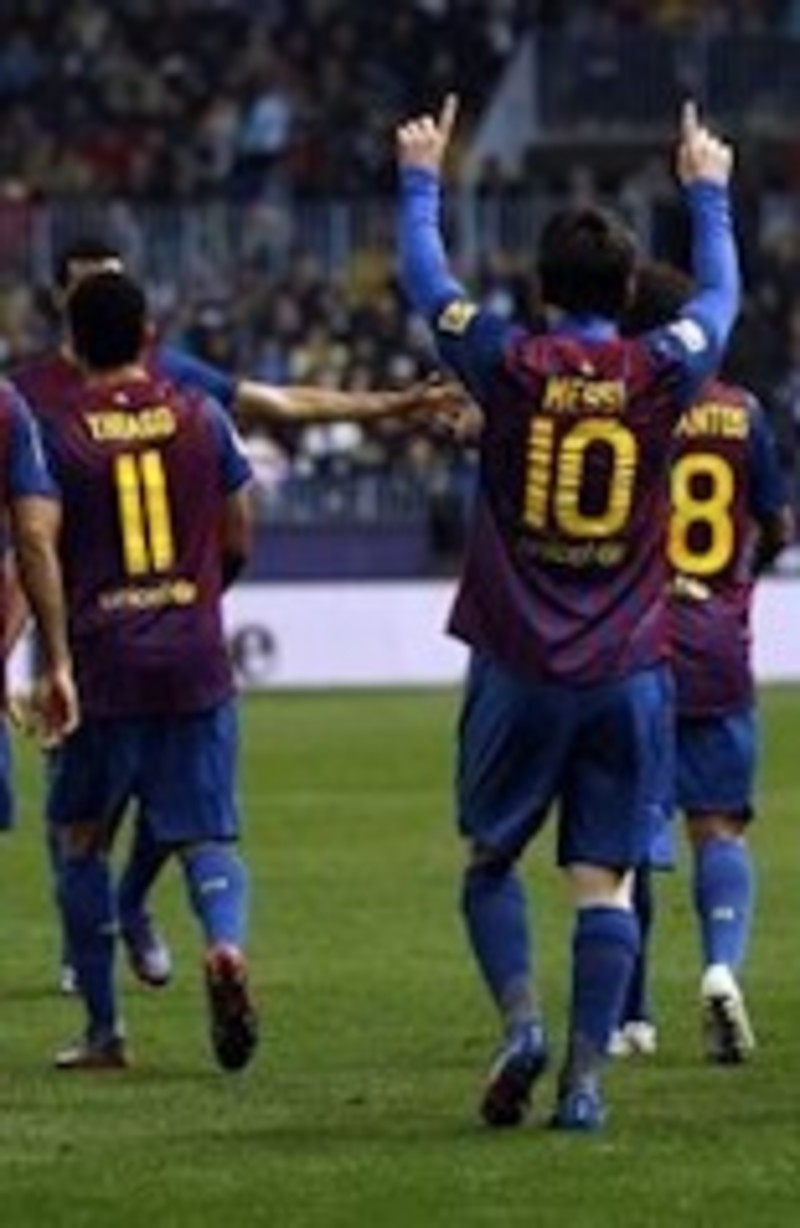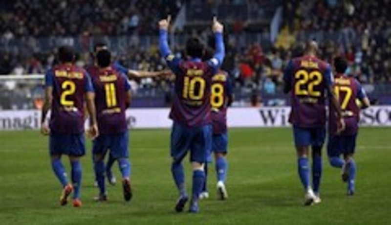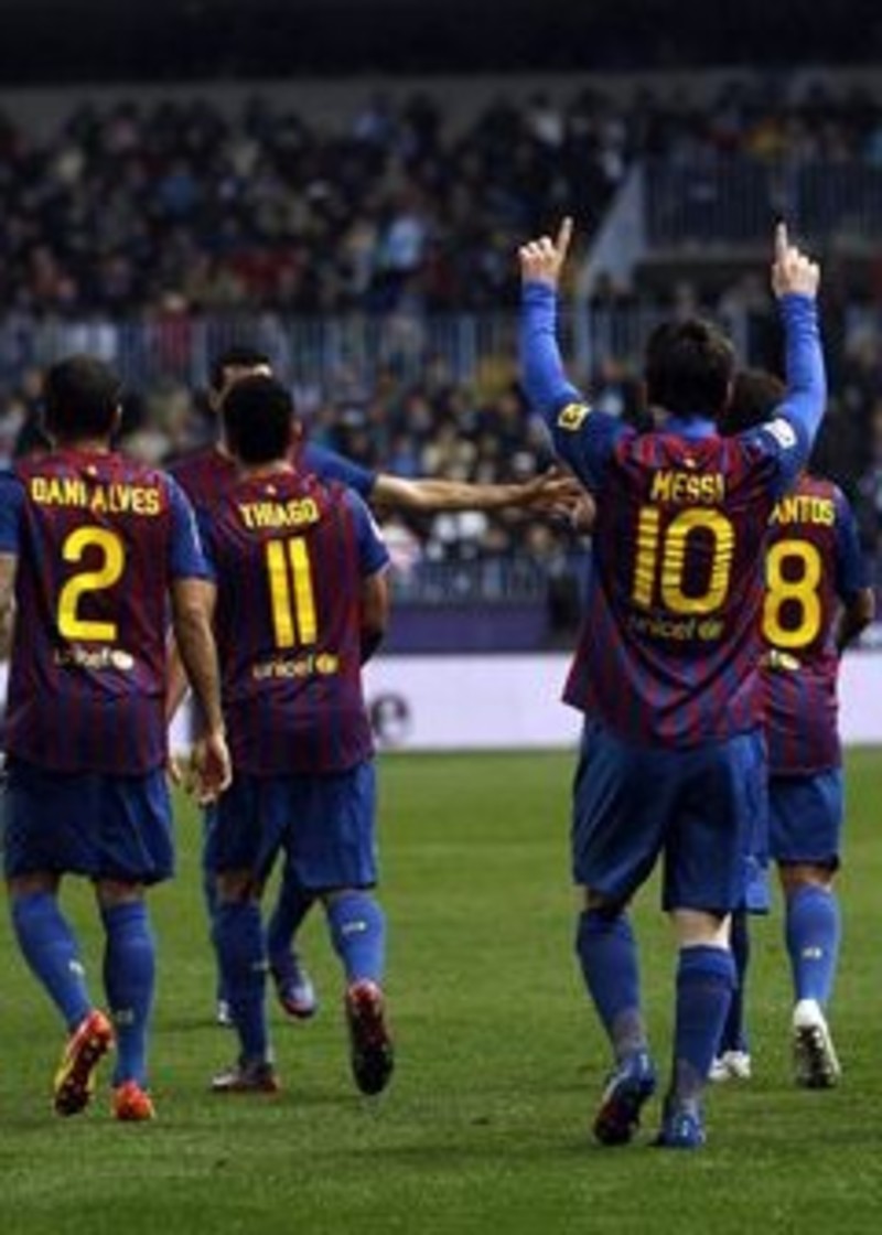 El FC Barcelona ha sumado una nueva victoria (1-3) este domingo en su visita a La Rosaleda correspondiente a la decimonovena jornada de la Liga BBVA, de la mano del cuatro veces ganador del Balón de Oro, Leo Messi, con lo que los de Tito Vilanova, presente en el banquillo culé, despiden una histórica primera vuelta --55 de 57 puntos posible-- con un triunfo de mérito ante el Málaga que le separa del Atlético en 11 puntos y del Real Madrid, en 18.