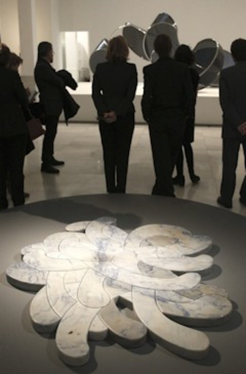 Además del acero, la artista da muestras de su manejo con otros materiales como el mármol en Rompecabezas I o la escayola en Líneas de fuerza.