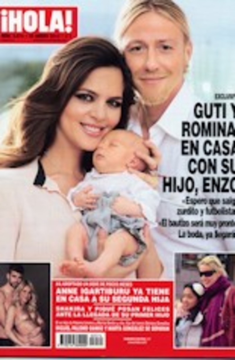 Romina y Guti se han estrenado como padres en la revista 'Hola'. Guti asegura que el bautizo del pequeño será pronto y que la boda ya llegará más adelante. Además el orgulloso papá confiesa entre risas que espera que Enzo "salga zurdito y futbolista. Me gustaría poder ir un día al Bernabeu y que mis hijos estuvieran jugando".