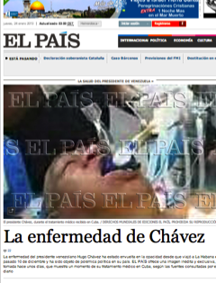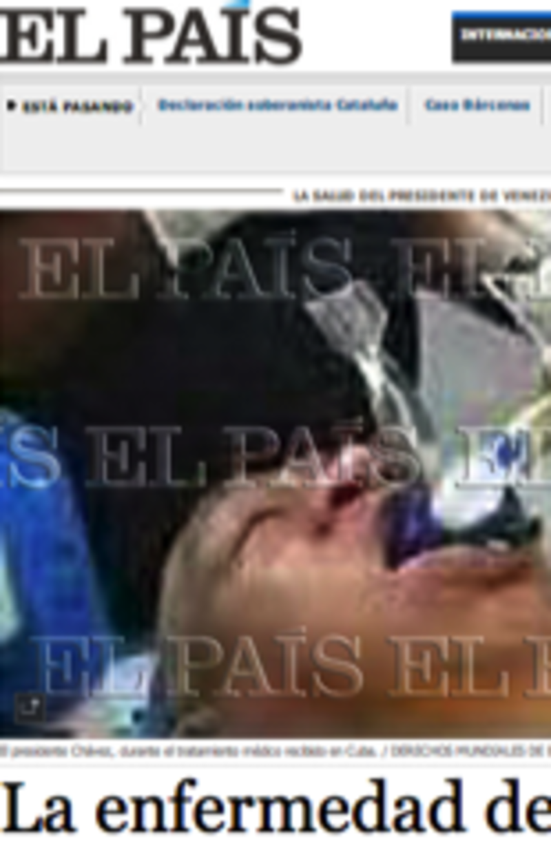 El País retiró esta madrugada de su pagina web y de su edición impresa una foto que mostraba a un hombre intubado en una cama de hospital y que una agencia informativa, señaló el medio, había suministrado al periódico afirmando que se trataba del presidente Chávez.