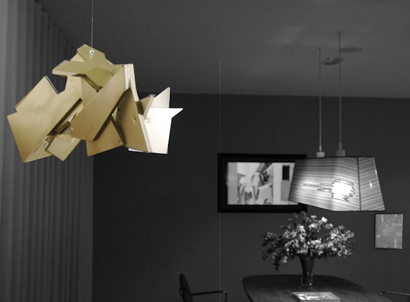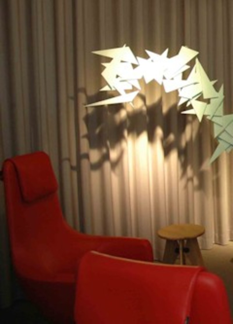 zona de lectura, la lava de los volcanes convive con el deshielo de los glaciares en un brutal contraste. Se trata de cuatro ligeras estructuras móviles, colgadas directamente de la escayola, y que otorgan cierta sensación de suave movimiento que comparten con los Gran Repos de Antonio Citterio.