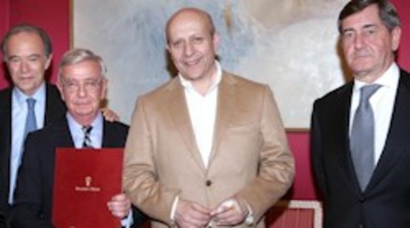En la foto, de izquierda a derecha: Gregorio Marañón y Beltrán de Lis, presidente del Patronato de la Fundación del Teatro Real; Rafael Ansón, presidente de la Real Academia de Gastronomía; José Ignacio Wert, ministro de Educación, Cultura y Deporte; y Alfonso Cortina, secretario general de la Real Academia de Gastronomía y presidente de la Junta de Amigos del Teatro Real.